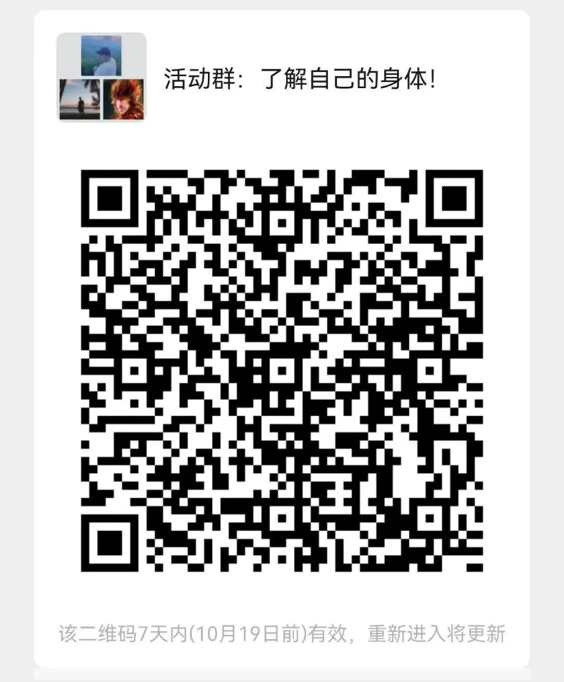 扫描微信群二维码,活动名额为进群的前100名受试者。(二维码有效期至10月19日)