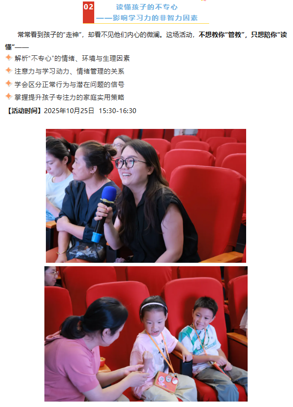 孩子注意力不集中?可能是情绪在“说话”;家人亚健康状态?中医有“妙招”。Do市百家大讲堂十月新增活动限时招募中!聚焦“健康养生”与“家庭教育”,用两场活动,陪你一起读懂孩子、守护家人,把专业的智慧,化为日常的温柔。
