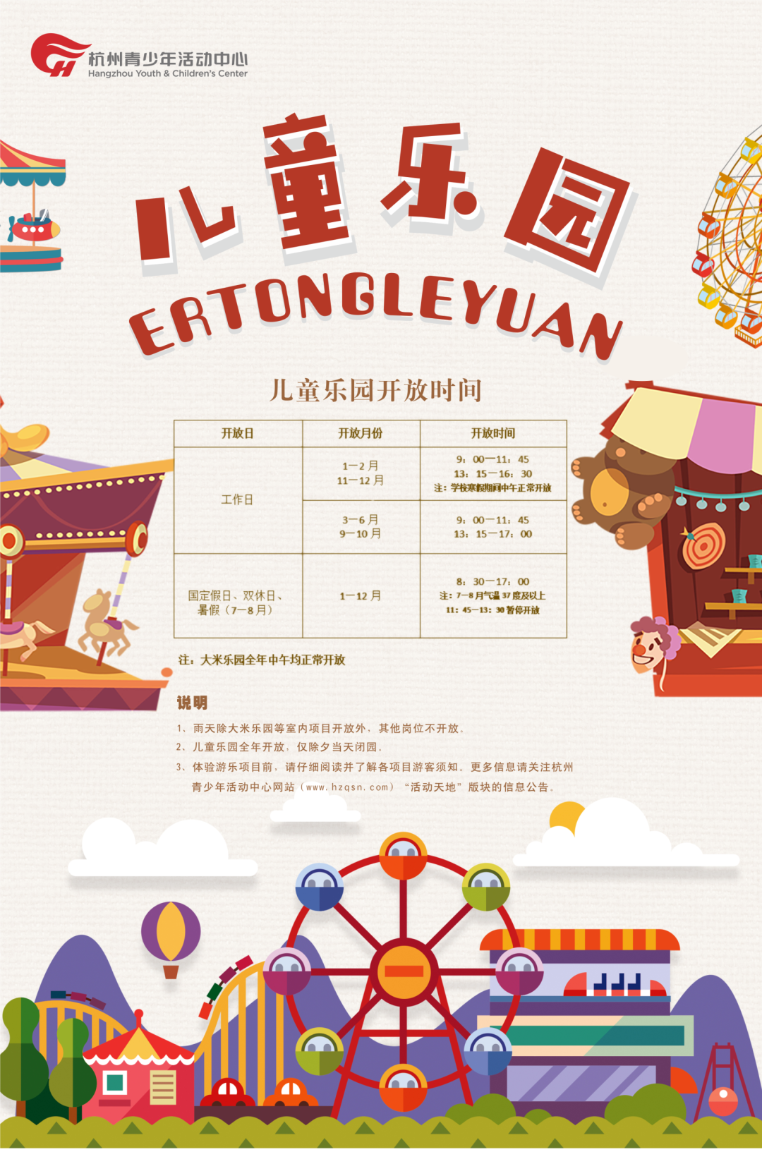 ●儿童乐园全年开放(除夕闭园)。开放时间随季节变化调整,请留意开放时间表。