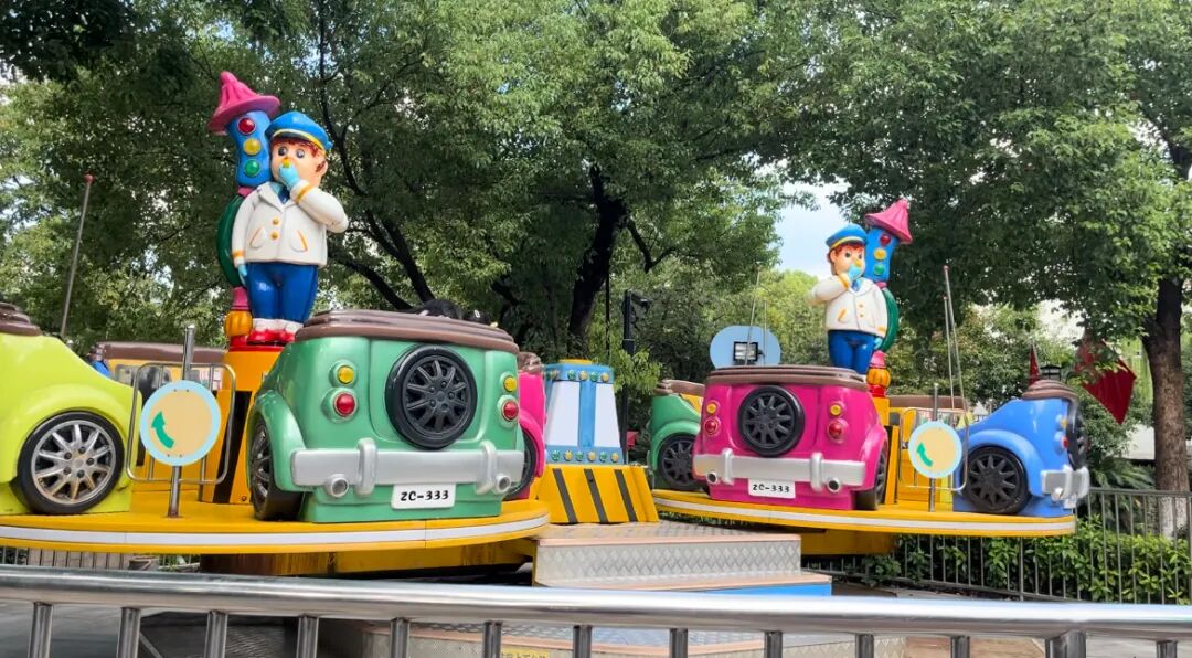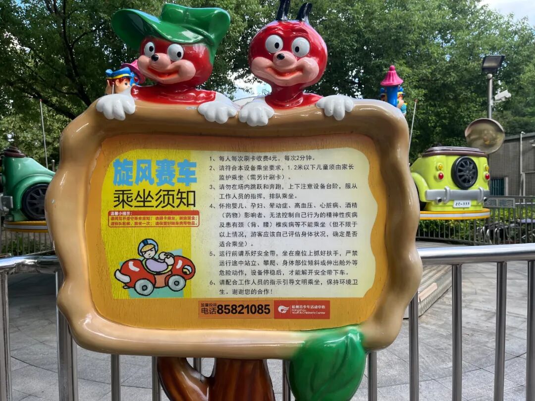 旋风赛车”是专为儿童设计的模拟赛车游乐设备,车身酷炫,启动后带来风驰电掣的2分钟体验。每次刷卡收费4元,是性价比极较高的儿童游乐项目,非常适合亲子互动。但安全规则不容忽视。