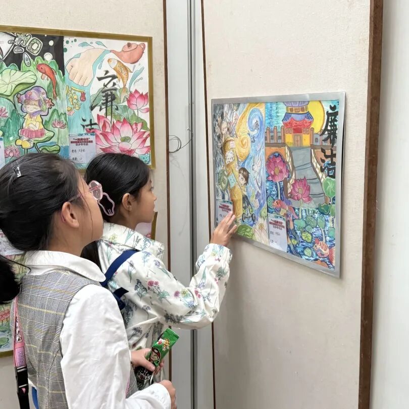 在美术楼展厅,再次展览百余幅“廉洁”优秀作品,集中展示青少年以动漫语言表达廉洁精神的创作成果,展现新时代青少年崇廉、尚洁的精神追求。让清风正气在艺术中流淌,在美育中生根。