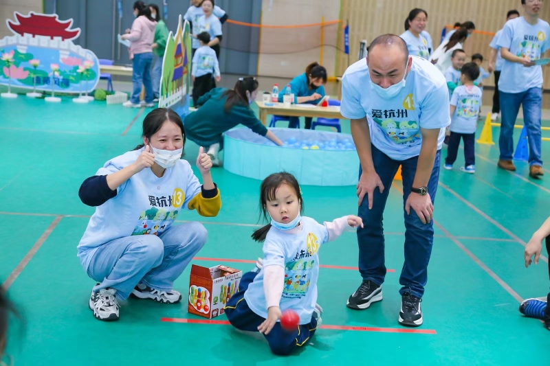 为引导杭城学龄前小伢儿知晓亚运会,增进市民参与盛会的热情,2022年,杭州青少年活动中心幼教部基于自身教育特色的传统活动“幸福一家亲”,围绕“喜迎亚运”大主题,开展亲子闯关挑战赛,把家庭式趣味健身活动送进社区,500多组家庭参加海选,60组家庭进入到决赛,分小、中、大班组分别决出冠亚季军家庭。