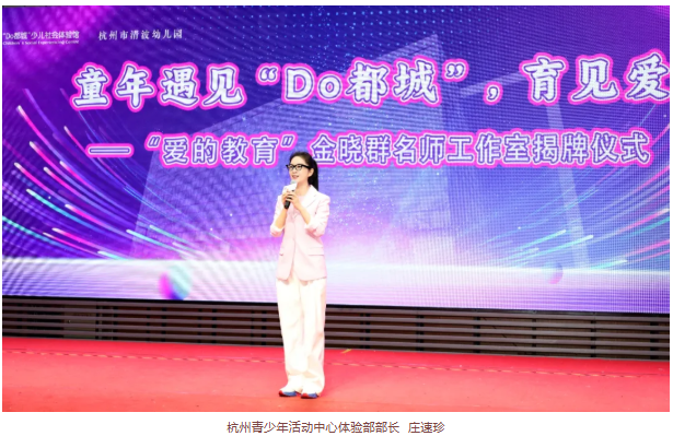 杭州青少年活动中心体验部部长庄速珍为活动致辞。“童年遇见‘Do都城’,育见爱,这不仅是一场仪式,更是对教育本质的深刻回应。17年的体验教育实践正是‘爱的教育’的真诚践行。"