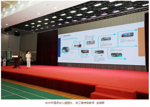 金晓群园长以《幼儿教师实现自我发展的四个关键期》为题发表主旨报告。金园长精准拆解自己教师职业成长的核心节点,层层递进剖析每个关键期的发展痛点与突破路径,为在场教师提供了兼具科学性与可操作性的成长指南。