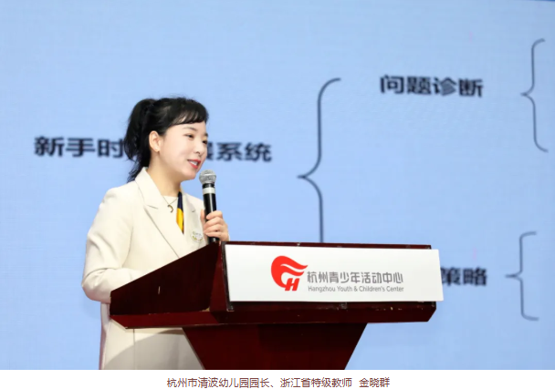 杭州市清波幼儿园园长、浙江省特级教师金晓群讲话。她回顾了清波幼儿园百年来“爱育童心”的深厚底蕴,强调名师工作室的成立是“爱的教育”发展的全新起点,工作室将秉持“专家引领、同伴互助、共同成长”的核心理念,构建高质量教师专业发展共同体,推动“爱的教育”走向更广阔的社会舞台。