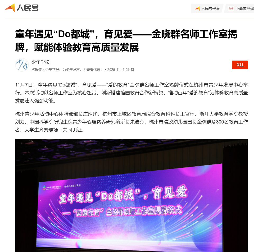 凤凰网、人民号等8家媒体报道“童年遇见‘Do都城’,育见爱——金晓群名师工作室揭牌”活动