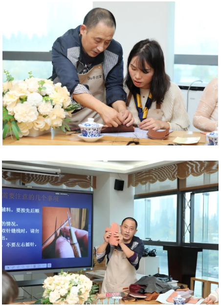 本次活动邀请杭州非遗周氏皮雕技艺项目代表性传承人、拱墅工匠、杭州市文旅行业能工巧匠——周传炳老师,为大家开启皮艺之门。周老师讲述了皮具文化的源流与底蕴,让每位参与者在动手之前,先读懂皮料的生命与性格。