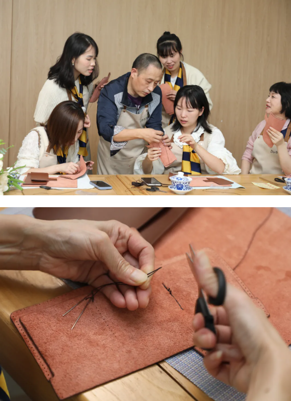 大家沉浸于亲手创作的宁静时光。从打磨皮边到穿针引线,每一个步骤都需要耐心与专注。这本独一无二的“爱的日记”,让“爱的教育”在日复一日的生活中延续。