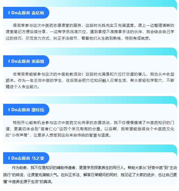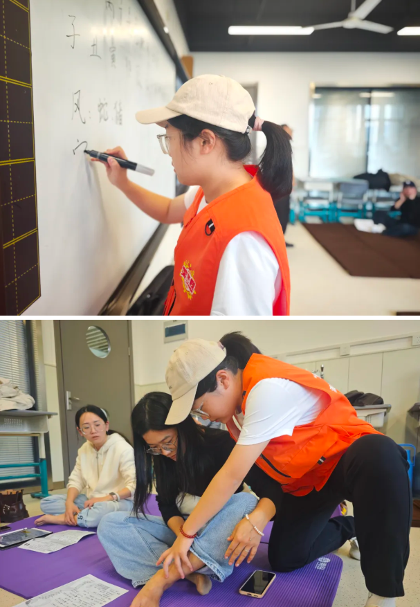 志愿者们充分发挥专业特长,在课前精心布置教学环境、分发课程讲义、引导学员签到,为课程顺利开展做好充分准备。在教学过程中,他们凭借扎实的中医理论基础,耐心指导学员准确找到足三里、合谷、太溪等常用养生穴位,并通过一对一指导,帮助学员掌握正确的按压手法。课程结束,服务不止。志愿者们将核心知识点、常见问题整理成图文笔记,展现了高校志愿者团队的专业素养与服务精神。