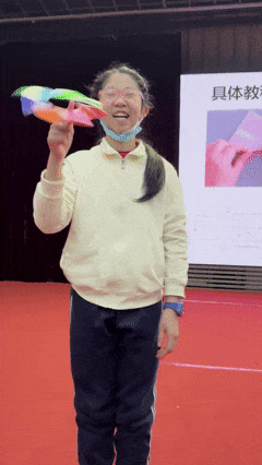 紧张刺激的个人挑战环节任务是完成一个圆环折纸作品,从学习折法到让圆环在手上转动起来,同学们脸上洋溢着喜悦。