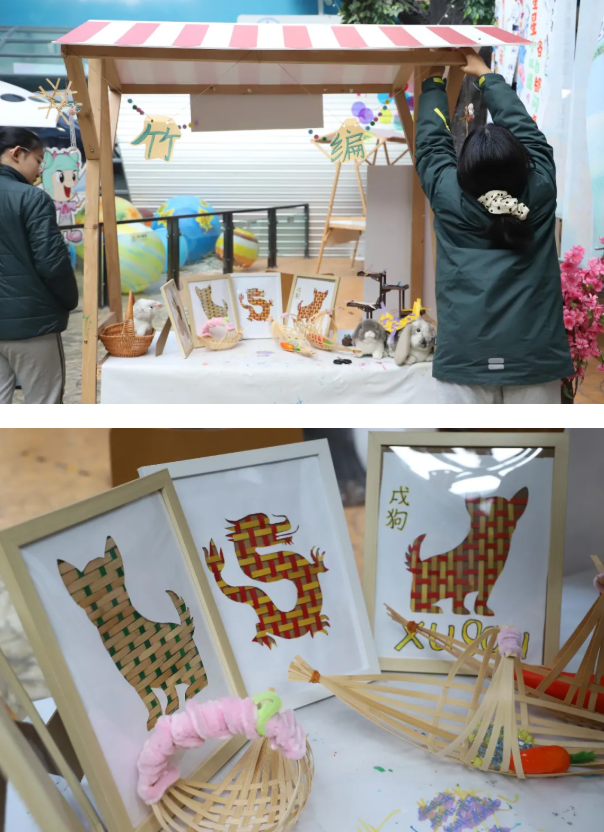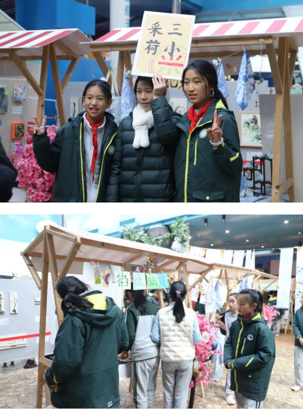 项目涵盖传统非遗手工艺类目中的扎染、竹编、掐丝珐琅等单元,每个单元通过“作品欣赏与内涵理解—技艺学习—作品创作—成果展示”四个环节引导学员探究非遗文化,体会匠人精神。结营活动,学员们化身“小小策展人”,分组布置展区、制作海报、整理工艺资料,从“学着做”到“教人做”,在展示作品的同时,也展现了对传统手工艺的理解与热爱。