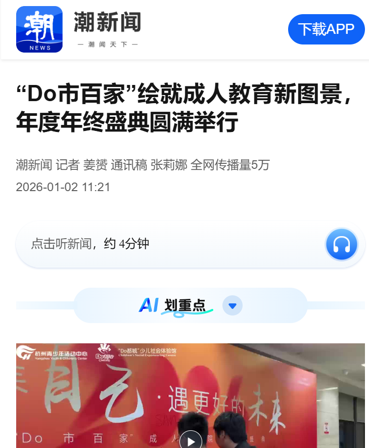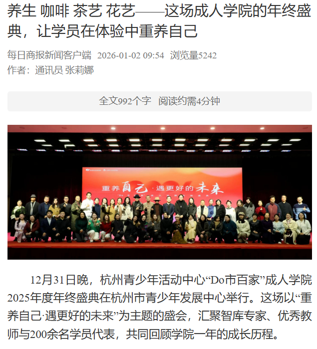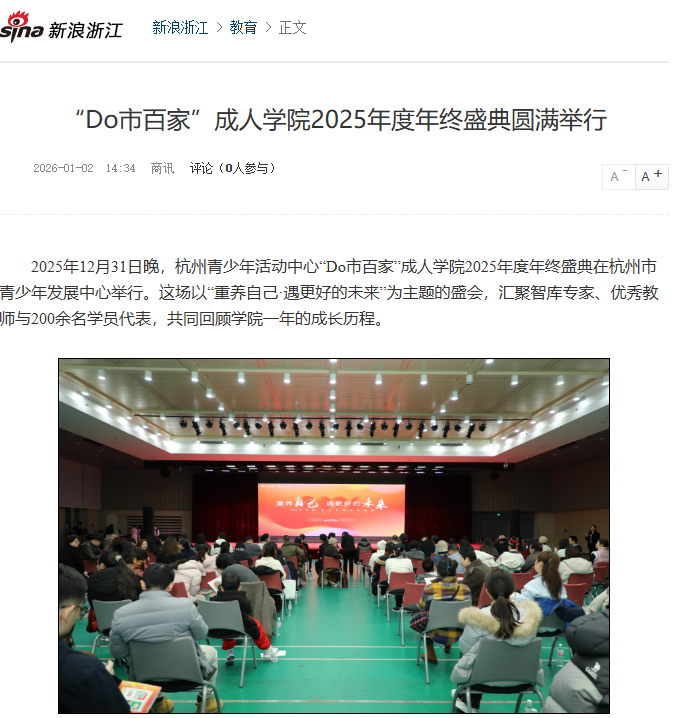潮新闻、每日商报、新浪浙江报道“Do市百家”成人学院年终盛典