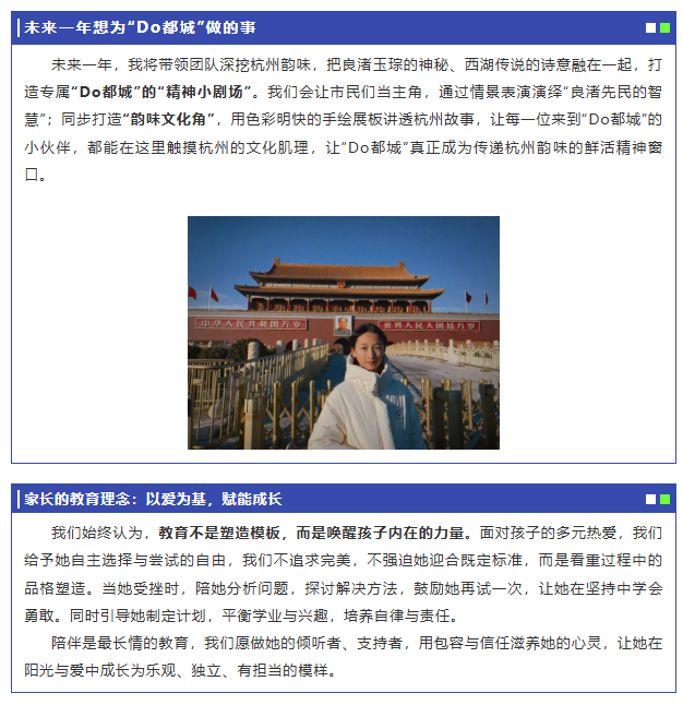成长路上,我始终保持着积极向上的心态,连续多年获评学校“七彩阳光少年”。未来,我也想继续带着这份热情,在热爱的领域里闪闪发光,在探索的道路上勇往直前!
