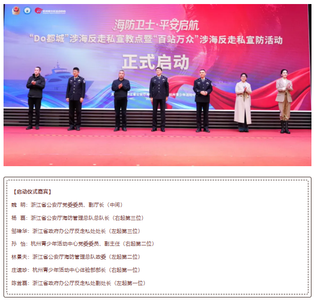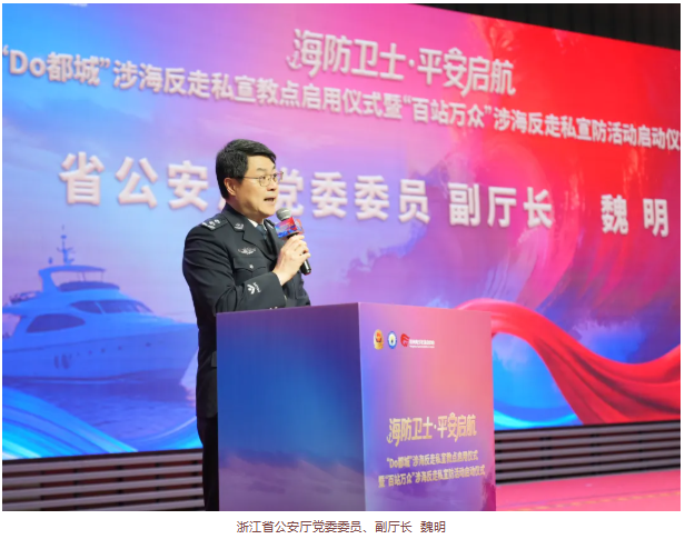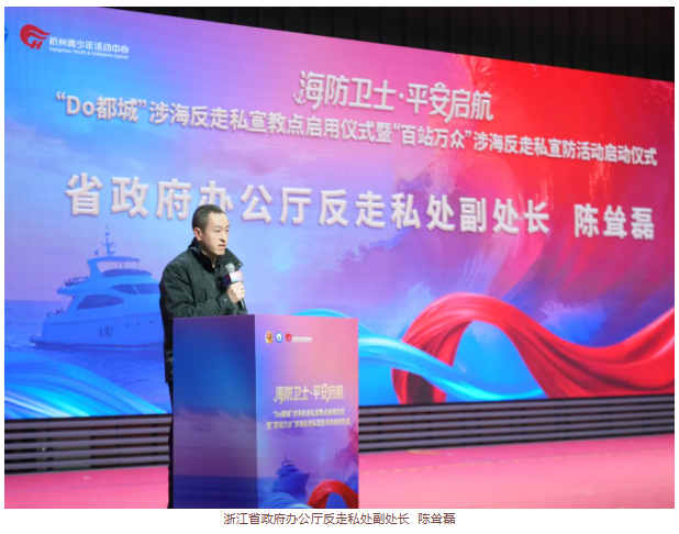 现场,“Do都城”海防管理总队项目正式启动,“百站万众”涉海反走私宣防活动正式启航。浙江省政府办公厅反走私处副处长陈耸磊宣读《海防安全共建倡议书》,向全社会发出海防安全共建的号召。