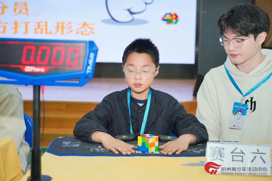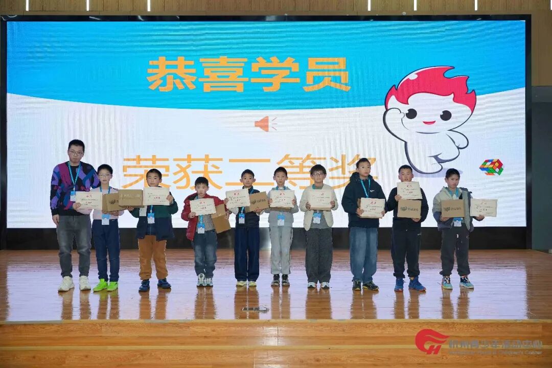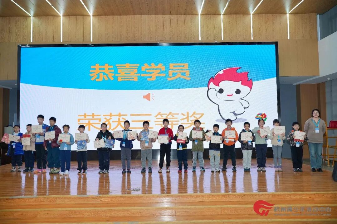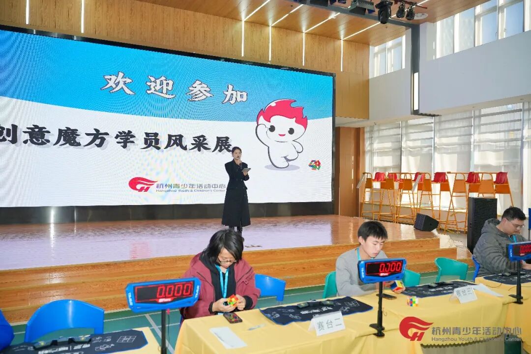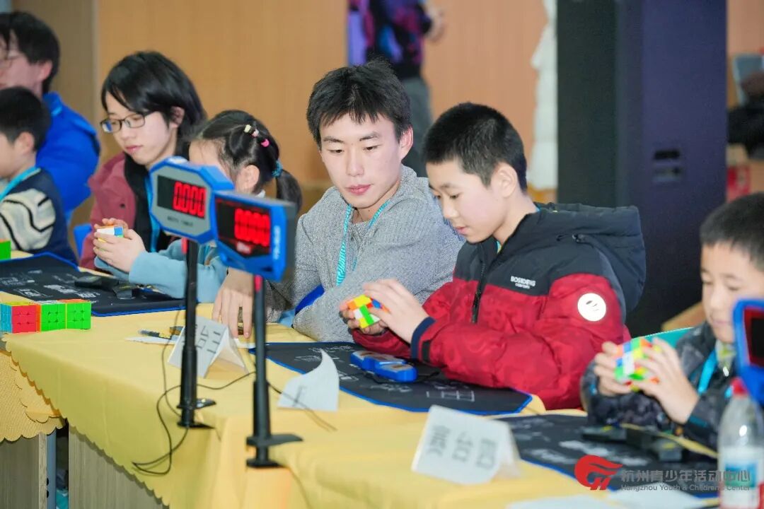 本次活动吸引了文学部创意魔方课程300余名热爱魔方的学员参与,经过层层筛选,114位小选手脱颖而出,顺利晋级在杭州青少年活动中心滨江分中心多功能厅举行的线下决赛。