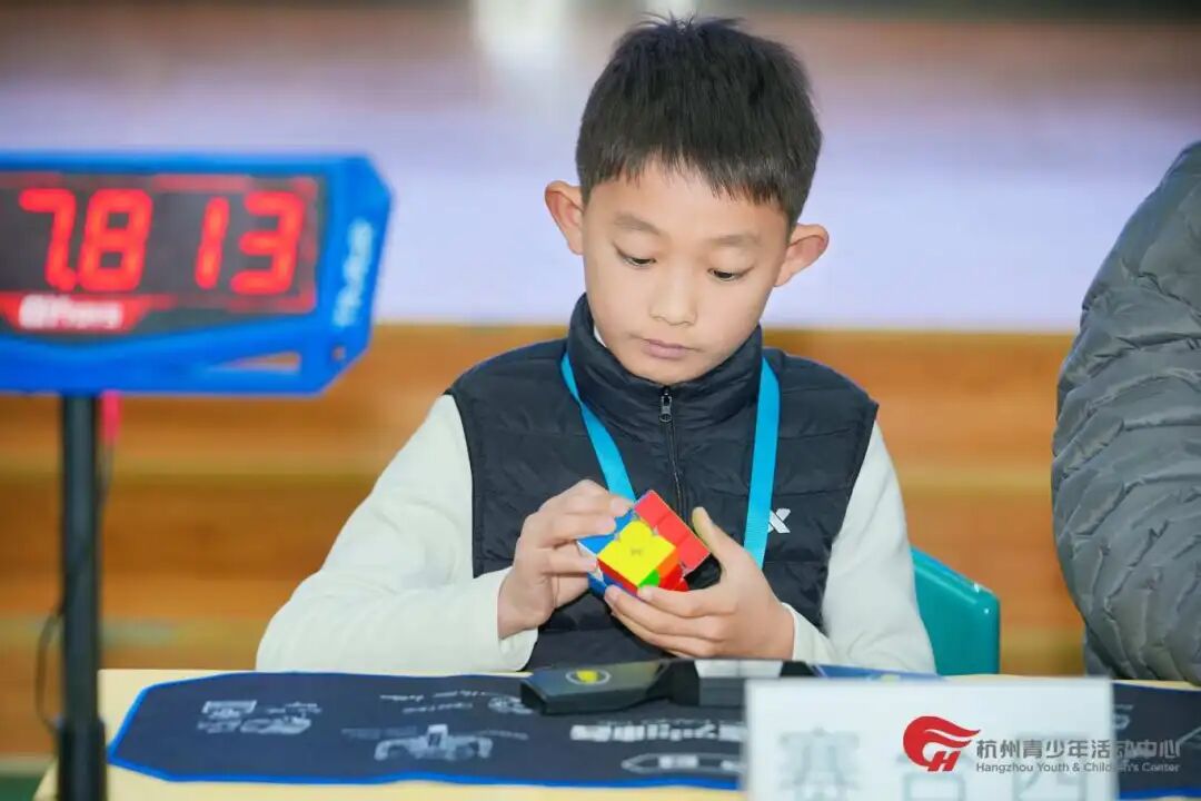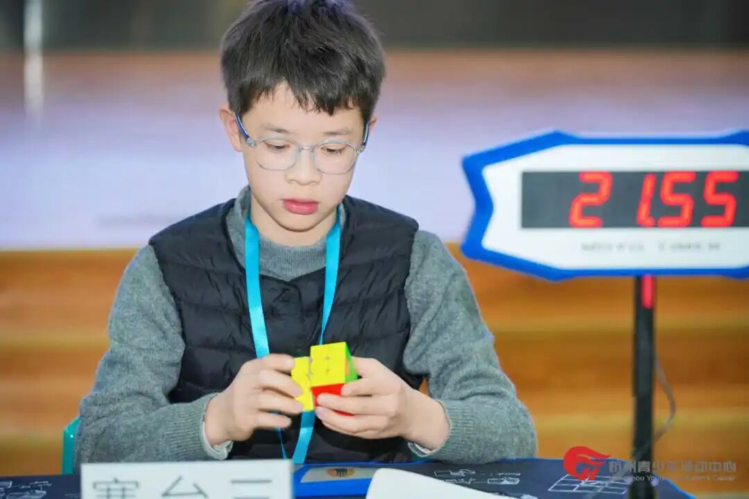 “开始!” 主持人一声令下,小选手们指尖翻飞,魔方的色块快速重组。每个人都凝神聚力,投身于速度与逻辑的交锋之中。现场只听得见魔方转动的清脆声响。短短数十秒,一个个散乱的魔方相继复位,展现出少年们出色的空间思维与手眼协调能力。
