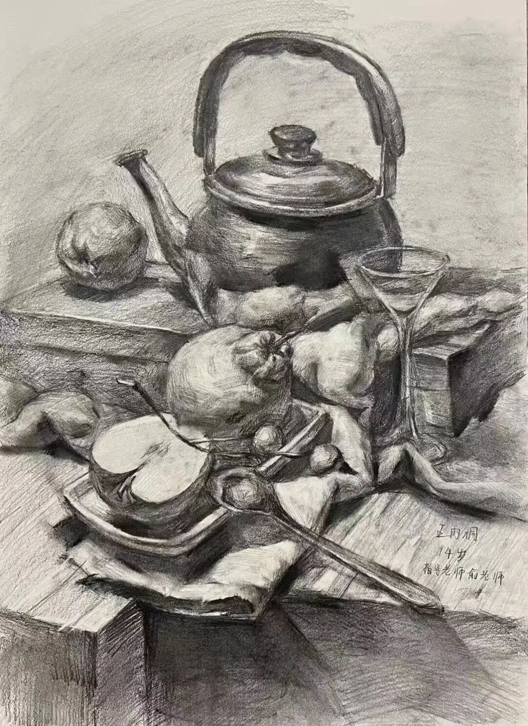 王婧涵初一开始进入杭州市青少年发展中心素描精英班学习,任课俞昕珺老师对她的评价概括为六个字“悟性足,且勤奋”。在之后的学习中,每一张作品都稳扎稳打,俞老师课上的每句话她都会仔细琢磨并且课后消化。此次成绩也是长期以来勤奋的最好证明。