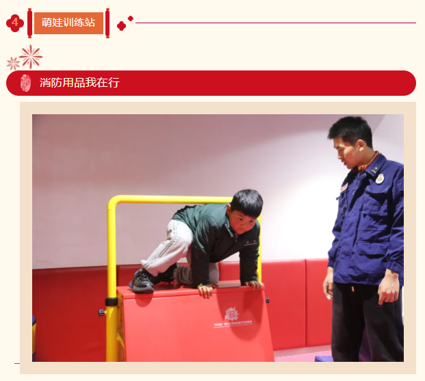 体育闯关区俨然变成了活力满满的“消防训练场”!彩色的锥形桶摆成障碍路线,彩虹门模拟“安全通道”,孩子们身着轻便的衣物,摩拳擦掌准备挑战。随着老师一声令下,孩子们像灵活的小松鼠般出发,弯腰绕过锥形桶,手脚协调地跨过小障碍,快速钻过彩虹门。这场趣味体能挑战,不仅锻炼了孩子们的平衡感、协调性,更让他们在拼搏中体会到了 “坚持就是胜利” 的道理,展现出新时代少年勇敢坚毅的精神风貌。