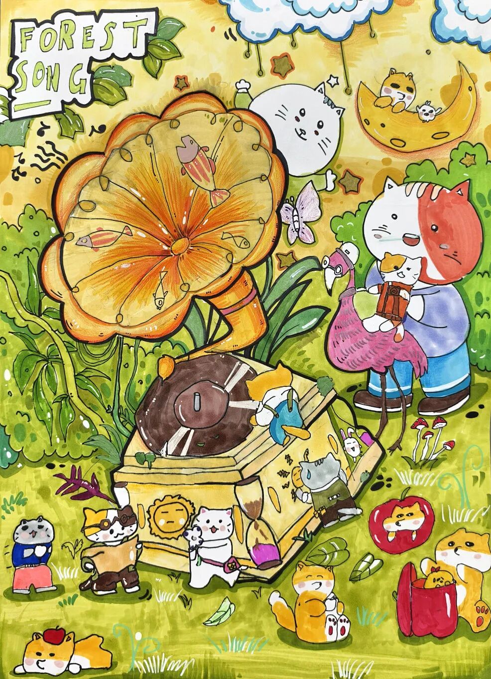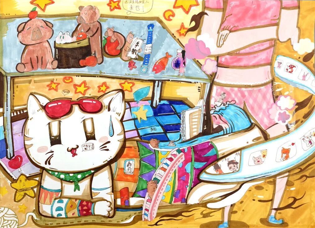 这两天的集训,孩子们从不会画动态到能设计完整角色,从配色生涩到搭配出个性色调,每一点进步都藏着热爱与努力。没人怕修改,没人吝分享,大家朝着“做好专属作品”的目标,在请教、讨论中稳步提升,连休息时间都在打磨细节。结营时,每幅作品都褪去了初时的生涩:线条流畅灵动,造型满是巧思,创意与技能完美融合。孩子们捧着心血之作满脸成就感,不仅收获了绘画技能,更坚定了对卡通的热爱,找到了专属自己的创作节奏。
