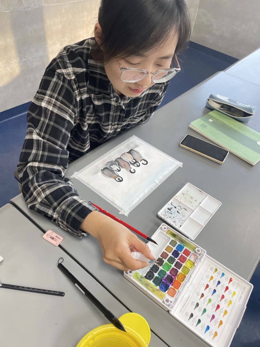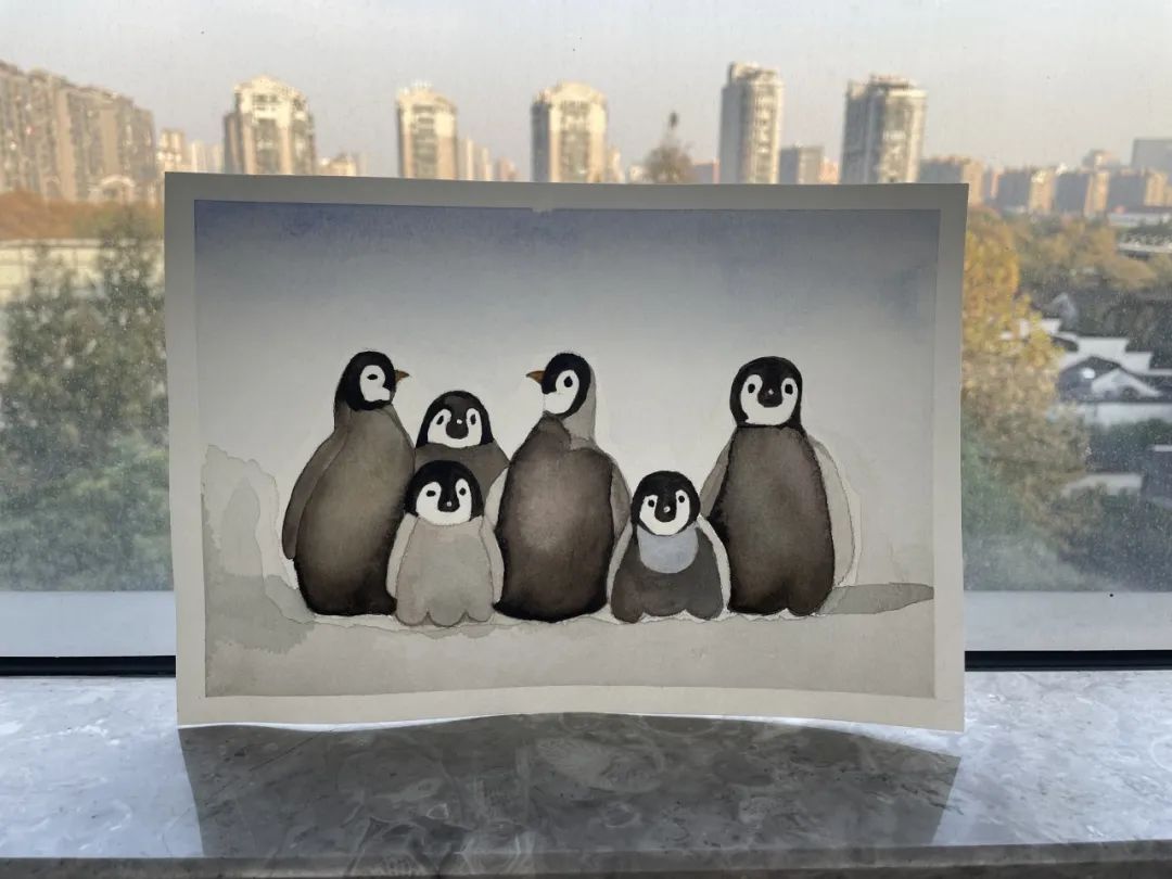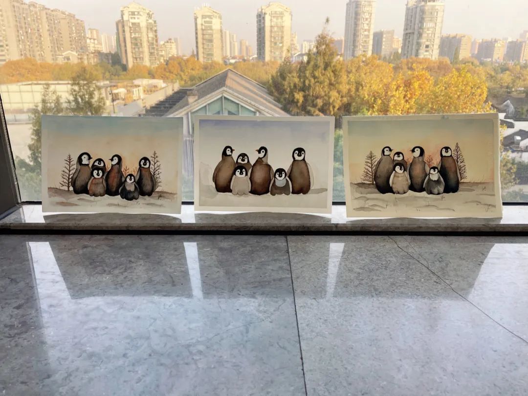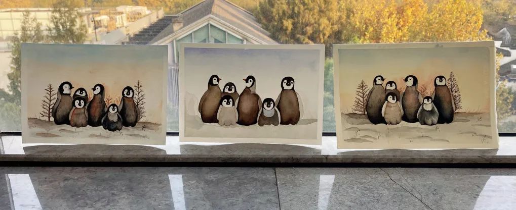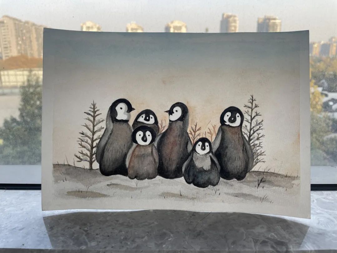 用湿画法尝试过大片的水彩之后,先放一放色彩。看似简单的萌宠小企鹅,却要用实打实的素描关系来体现。没想到学员们都完成得很好。