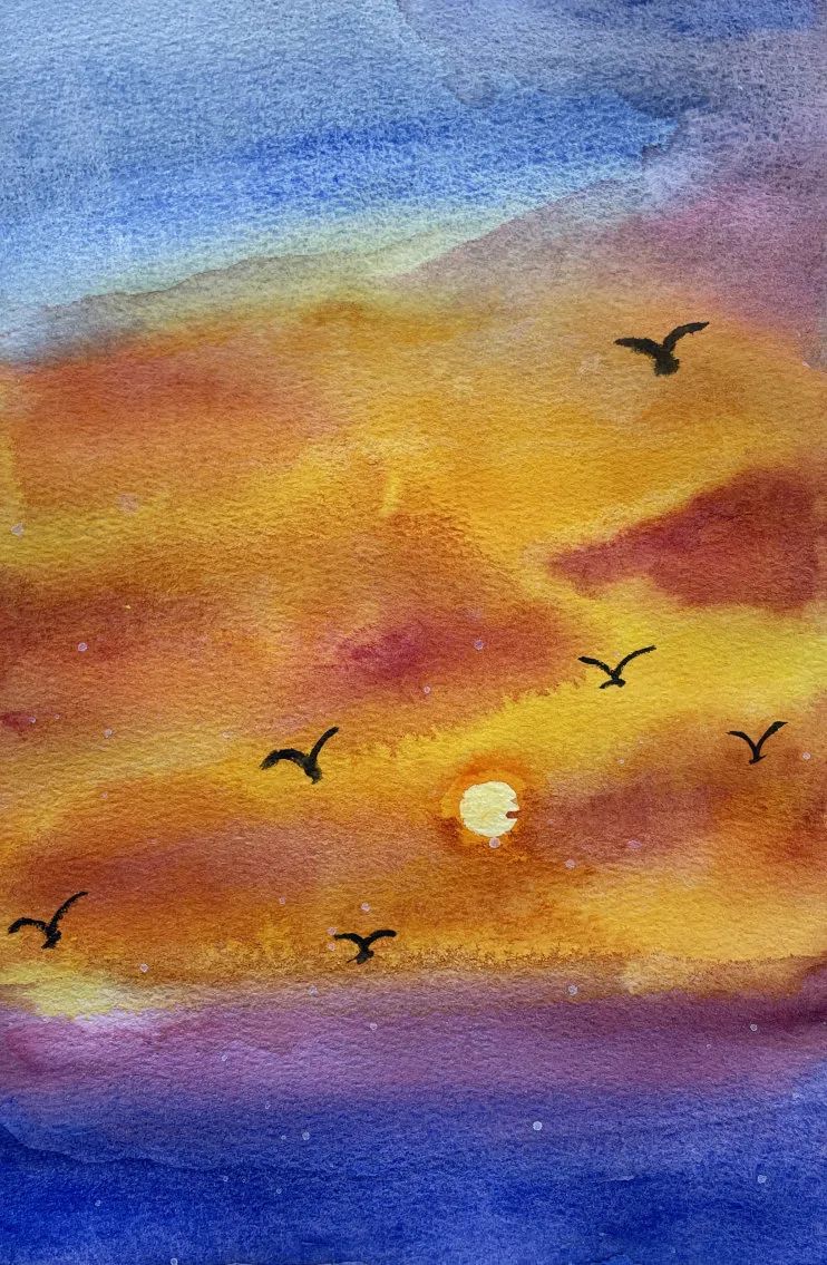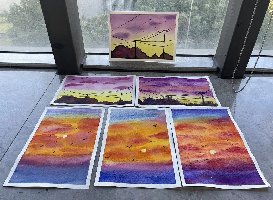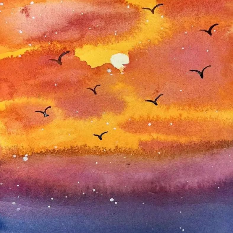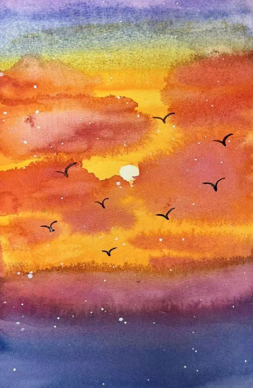 大自然是最广阔的课堂,赋予我们取之不尽的灵感源泉。如果可以,拿上水彩装备(会很简便),就可以实现水彩写生。初入水彩,我们用水彩湿画法画一画美丽的云彩。