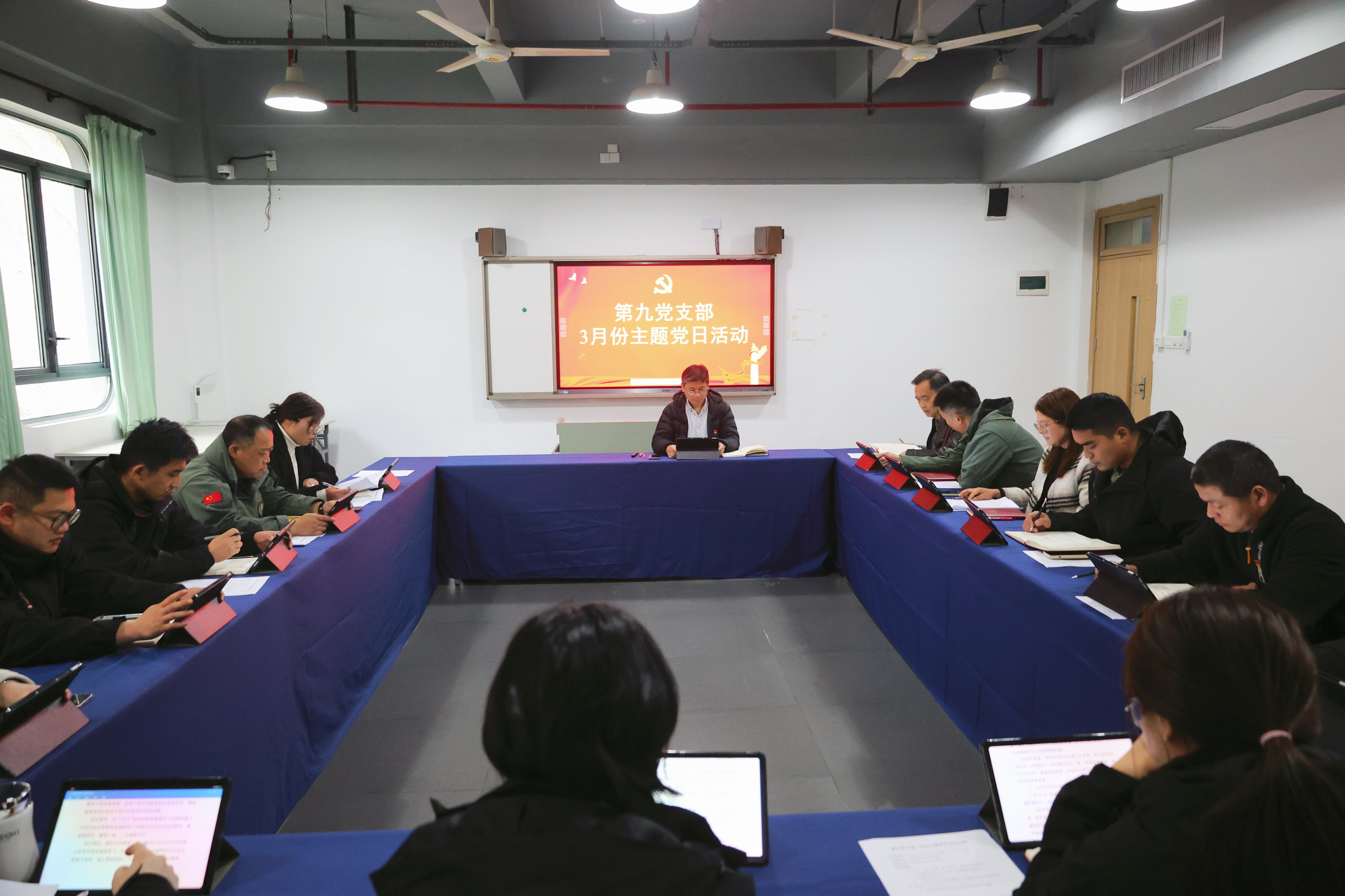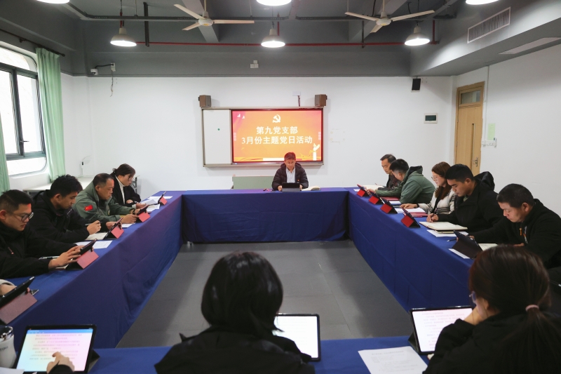 为深入学习贯彻习近平新时代中国特色社会主义思想,严肃党内政治生活,强化党员党性修养,2026年3月16日下午,第九党支部在营地航母楼221教室开展以“凝心铸魂强根基,自我革命促提升”为主题的党日活动暨组织生活会。会议由支部书记陈俊华同志主持,在岗党员参加。