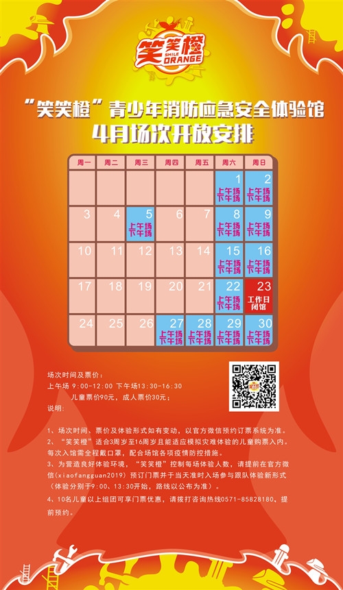 “笑笑橙”四月份场次开放时间公告