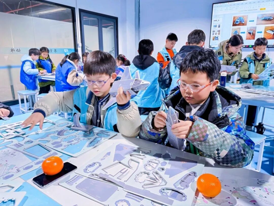 上午,探索从“整体”进入“核心”。在航空发动机探秘中,了解飞机的“心脏”如何跳动。然后,每个孩子领到一套歼-20隐形战机模型,在动手拼装中,感受“国之利刃”的设计美学与工程智慧。
