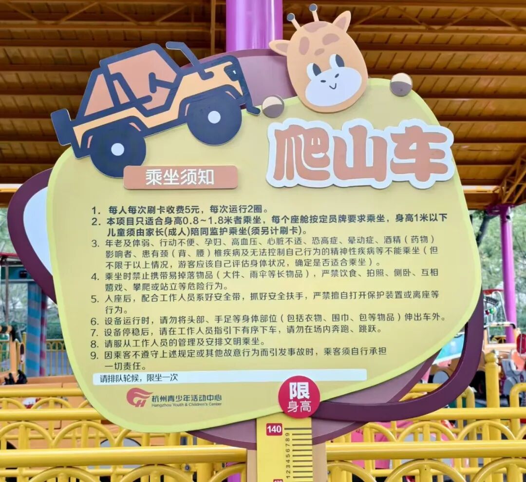 别再犹豫啦!快带上家里的小宝贝,来杭州青少年活动中心半山分中心游乐园,坐上萌趣的“爬山车”,一起在欢笑中“翻山越岭”,解锁童年的无限乐趣吧!