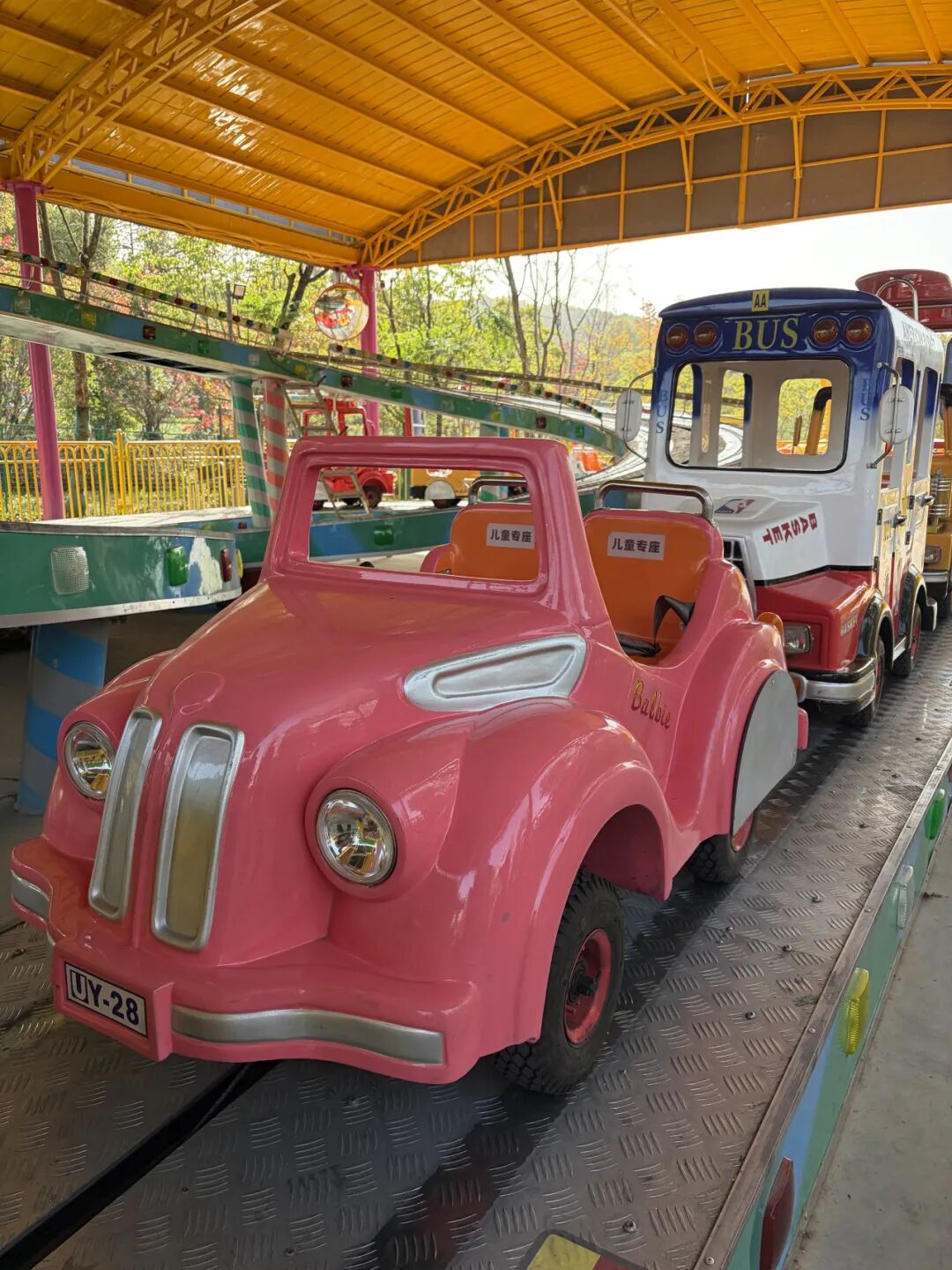 半山分中心游乐园“爬山车”简直是“萌力天花板”!有粉嘟嘟的复古小汽车,像从童话里开出来的座驾;有威风凛凛的红色消防车,满足小小消防员的英雄梦;还有黄绿相间的越野车、亮黄色的校车,每一辆都造型独特,让人忍不住想挨个打卡。孩子们坐进专属座舱,系好安全带,瞬间变身小小驾驶员,准备开启一场欢乐探险。