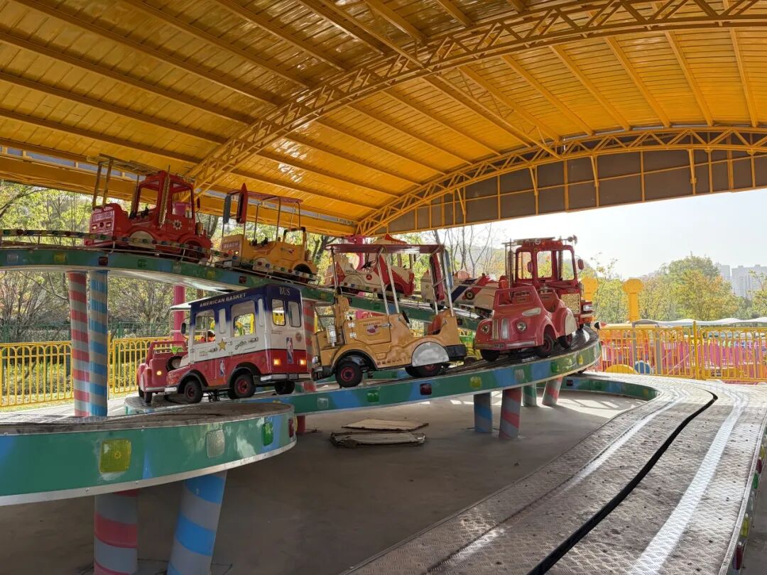 孩子们可以和小伙伴并肩“驾驶”,分享快乐;也可以和爸爸妈妈一起坐进车厢,享受难得的亲子时光;阳光透过顶棚洒下来,笑声在乐园里回荡,这就是童年最珍贵的模样。