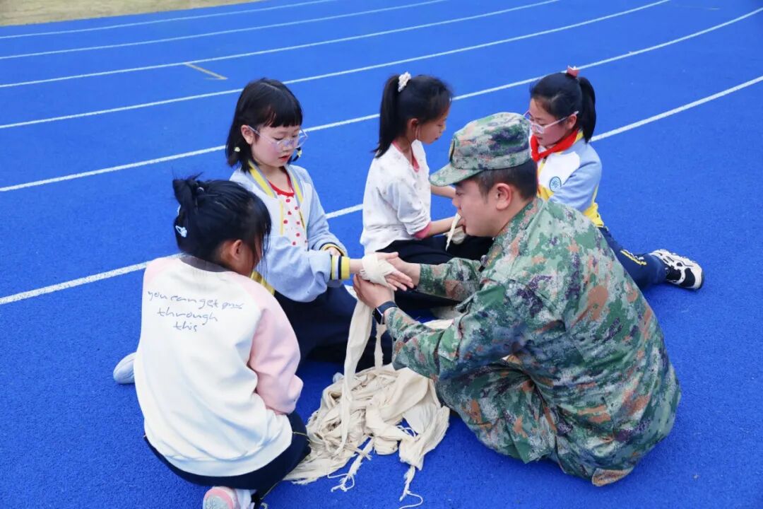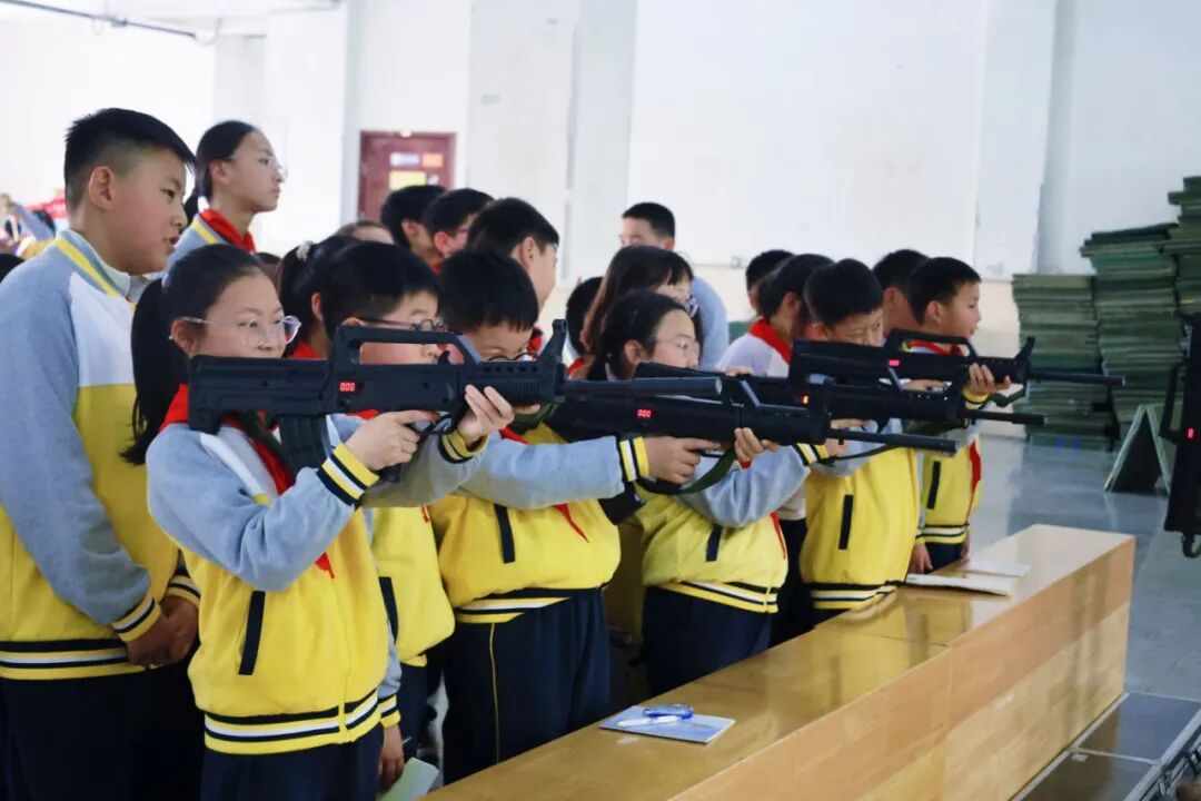 在“实践淬炼”环节,营地教官们组织学生分别开展应用射击、战场救护、真人CS、军事体能、手雷投掷等7项国防教育体验项目。在教官们的耐心指导下,少先队员们认真学习握枪姿势、瞄准技巧、包扎技能等,将抽象的爱国情怀转化为具体的行动感知,进一步强化了“强国必有我”的信念。