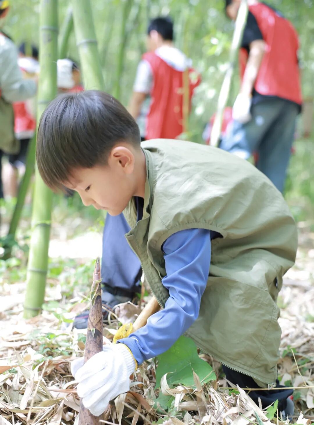 上午:山野漫步、挖笋体验、柳条头环制作