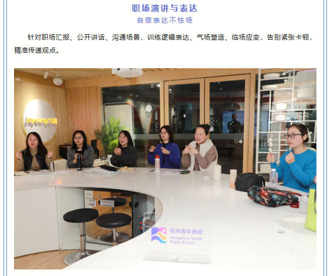杭州青年夜校是由共青团杭州市委主办,旨在进一步深化青年发展型城市建设,满足在杭青年对技能提升、就业创业、兴趣爱好等需求,为青年搭建学习交流发展平台。