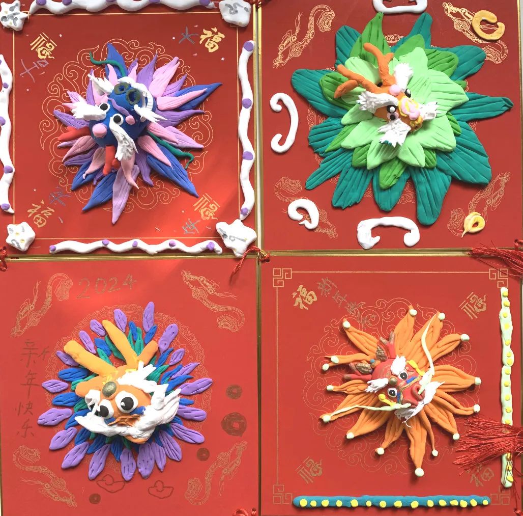 2024美劳社团集训圆满收官!短短的三天集训,小朋友们收获满满。作为一年当中最为隆重的社团活动,今年的寒假集训以“龙”年为主题,和孩子们一同探索中国龙元素,了解传统年文化。猜“龙”字成语、听“年”兽故事、集“心愿”红包、绘“神龙”图案、塑“龙头”浮雕、剪“福龙”窗花、舞“巨龙”迎春。