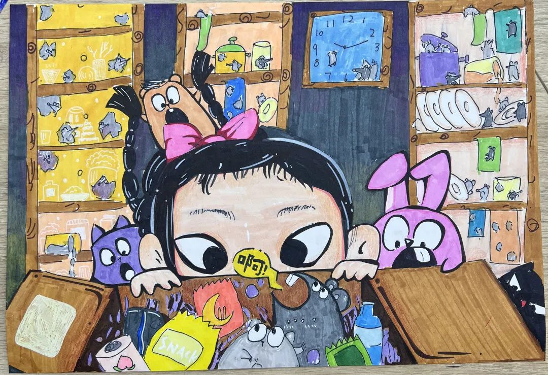 在一个家庭,好的家风是塑造成员品德、价值观的基石。家风不仅仅是家庭成员之间的相处规范,更是对廉洁的深刻引导。在课堂上,我们从好家风作为切入点,引导孩子们自主思考如何做到廉洁以及廉洁和好的家风之间的关系,并以此展开了绘画创作。