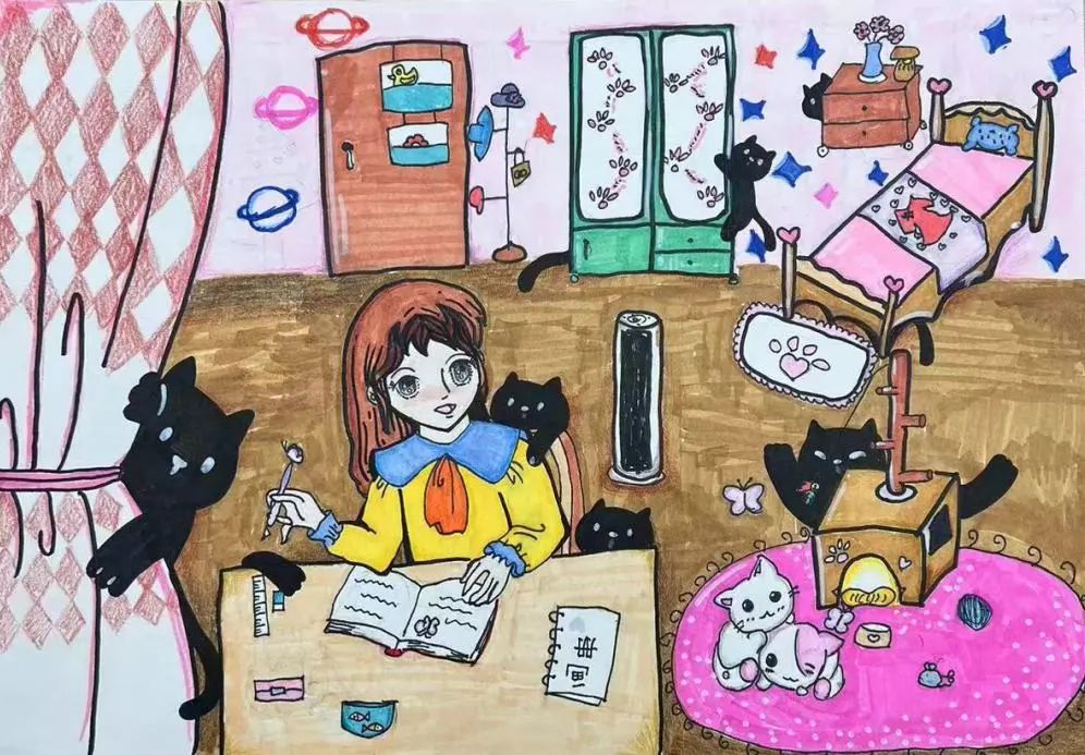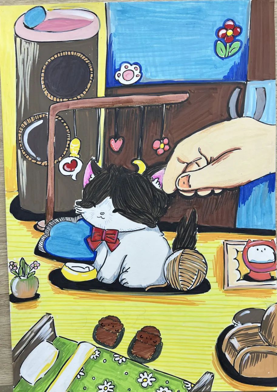 在一个家庭,好的家风是塑造成员品德、价值观的基石。家风不仅仅是家庭成员之间的相处规范,更是对廉洁的深刻引导。在课堂上,我们从好家风作为切入点,引导孩子们自主思考如何做到廉洁以及廉洁和好的家风之间的关系,并以此展开了绘画创作。