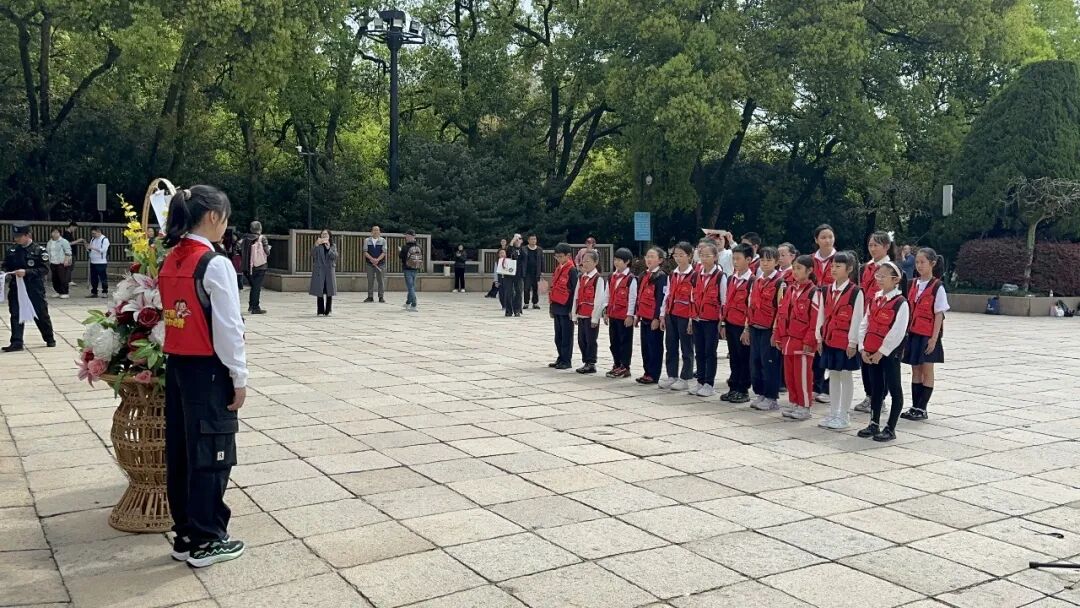 清明时节,我们走进浙江革命烈士纪念馆,参加纪念长征胜利90周年主题实践活动。 祭英烈 我们在纪念碑前敬献花篮、肃立默哀。国歌声响起,大家齐声高唱。一位队员说:“感谢你们,是你们的付出才有今天的美好生活。”