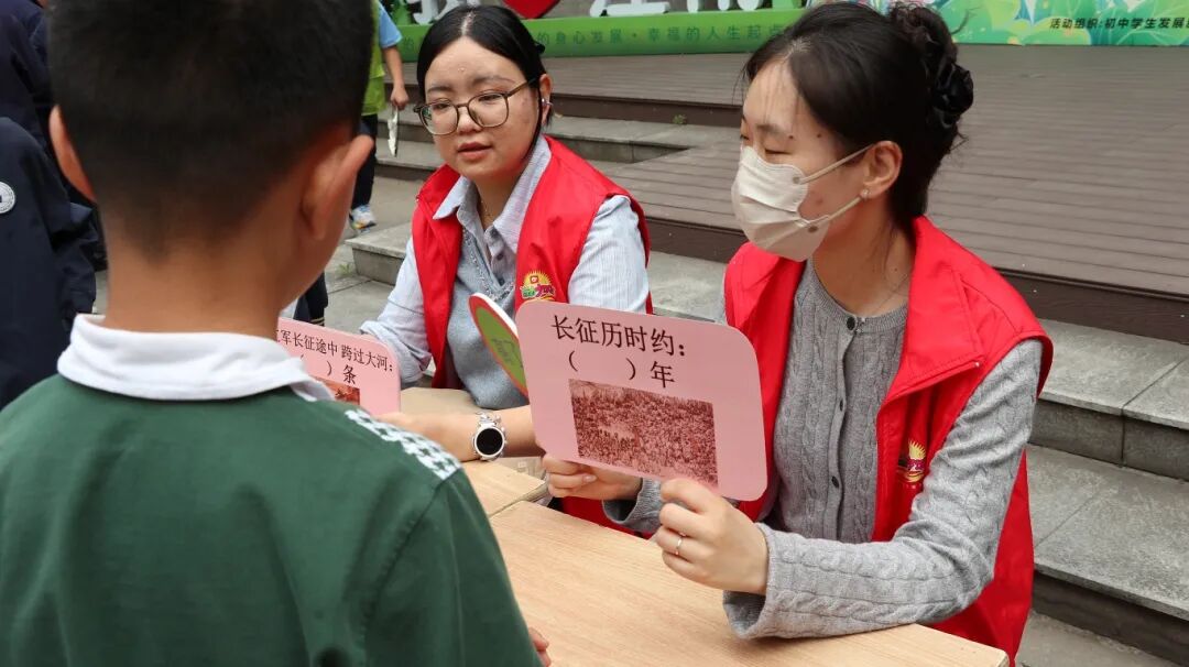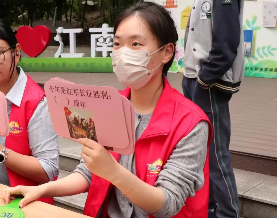 游戏将红色历史与趣味竞猜巧妙融合。活动现场,同学们紧盯关键词,争相报出心中的数字。在“大了”“小了”的提示下,每一次精准猜中都引发一阵欢呼。大家全神贯注、踊跃抢答,从长征总里程到重要战役的时间节点,一个个数字在逼近答案的紧张氛围中被牢牢记住。一位参与活动的同学兴奋地说:“原来这些数字背后藏着那么多感人的故事,猜对的那一刻特别有成就感!”通过这场数字挑战,学生对长征历史有了更深刻的理解。