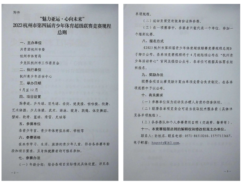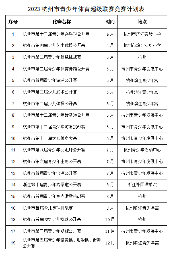 “魅力亚运·心向未来”2023杭州市青少年体育超级联赛竞赛计划正式发布
