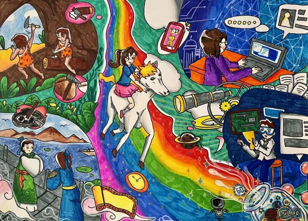 “穿越”,一个充满神秘和奇幻的词汇,它为学生们提供了一个全新的视角去审视世界。在这个虚拟的时空中,学生们可以跨越时空的限制,将古今中外、历史与未来巧妙地结合在一起。每一笔、每一划都仿佛带着魔法,引领观者进入一个奇幻的世界。