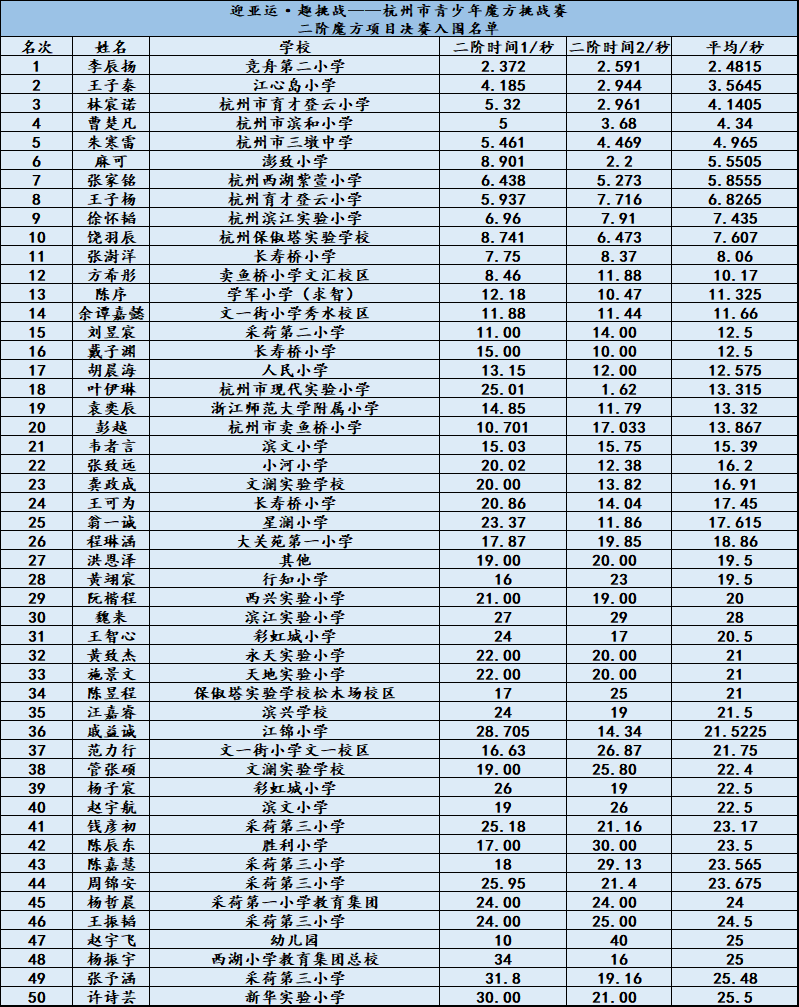 各项目初赛——选手需现场复原“所选参赛项目的魔方”3次,取平均成绩在前 24 名的小选手进入复赛。