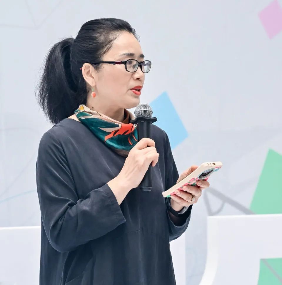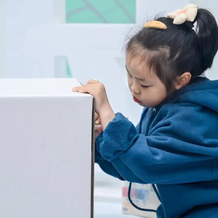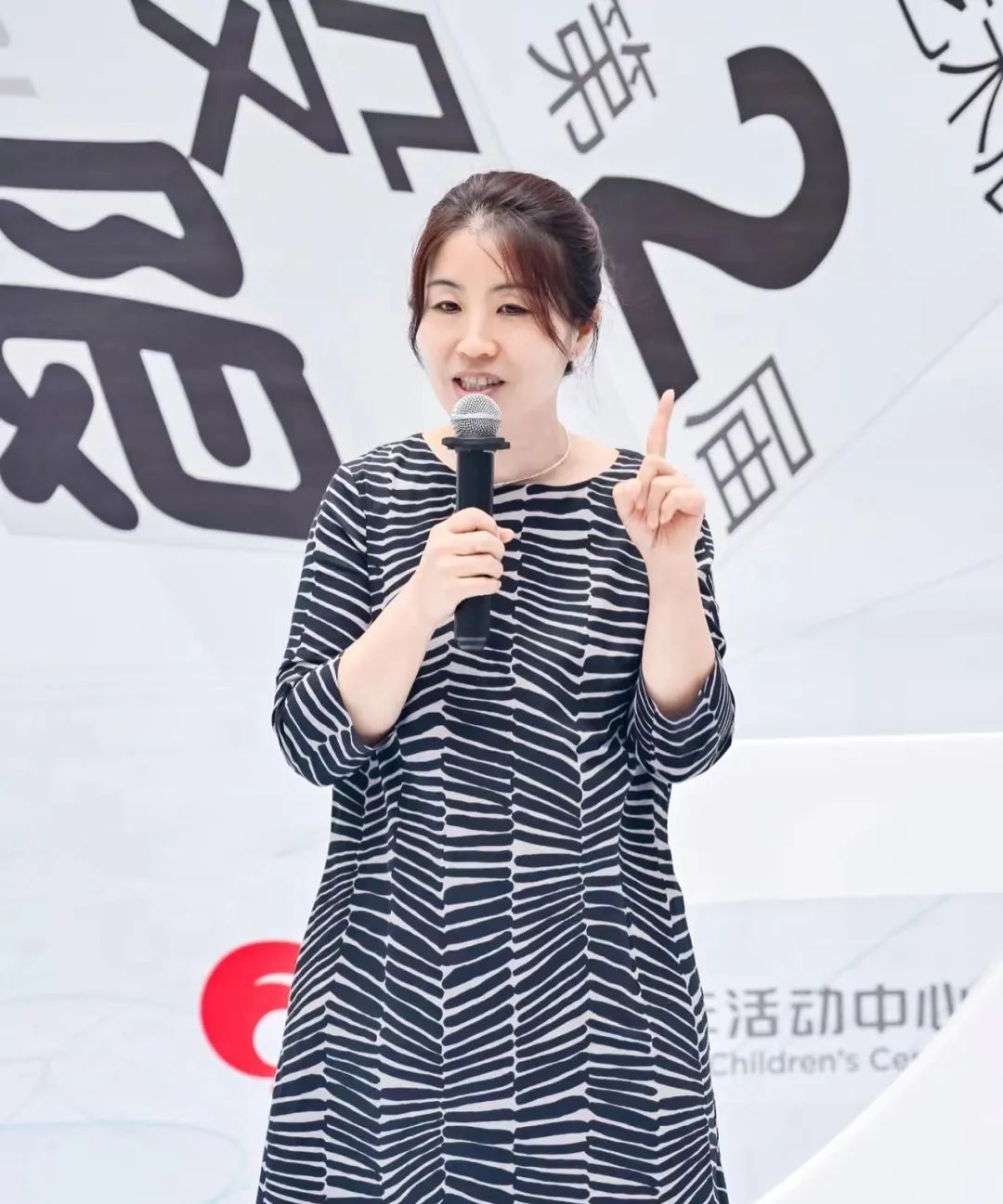 在开幕式上,展览的策展人、杭州青少年活动中心美术部副部长张晨昕和大家分享了本次展览的背景和设计理念。她说展览主要有以下初衷:一是利用有限的场地打造一面“属于孩子自己的白墙”,一个可以让孩子自由表达、宣泄的空间;二是选用简易质朴且具有充分的想象性的载体,可以满足不同孩子的创作需求;三是让儿童艺术的展览具有生长性,注重儿童的参与感,在整个展览的周期中孩子可以重复的表达、借鉴、打破、重构。四是一个完全开放的共创空间,师生、家庭、个人都可以自由参与,在合作共创的过程中相互融合、相互理解。