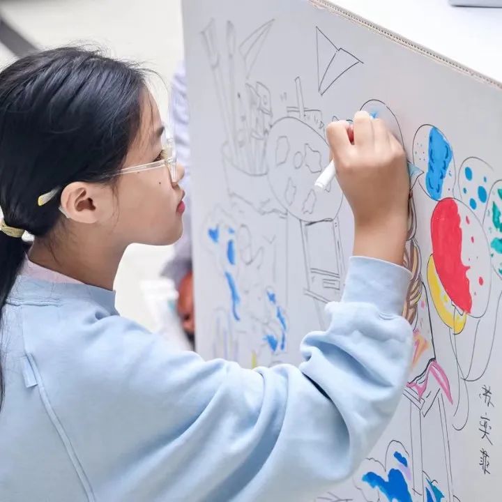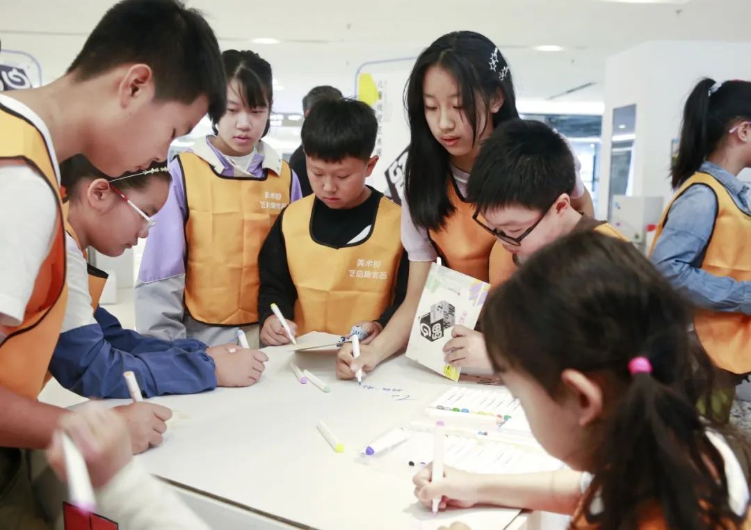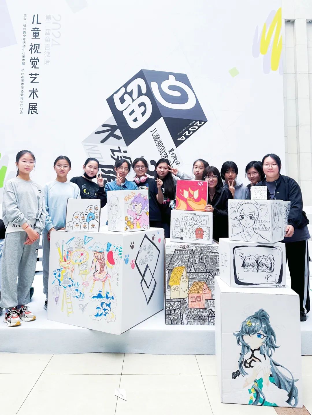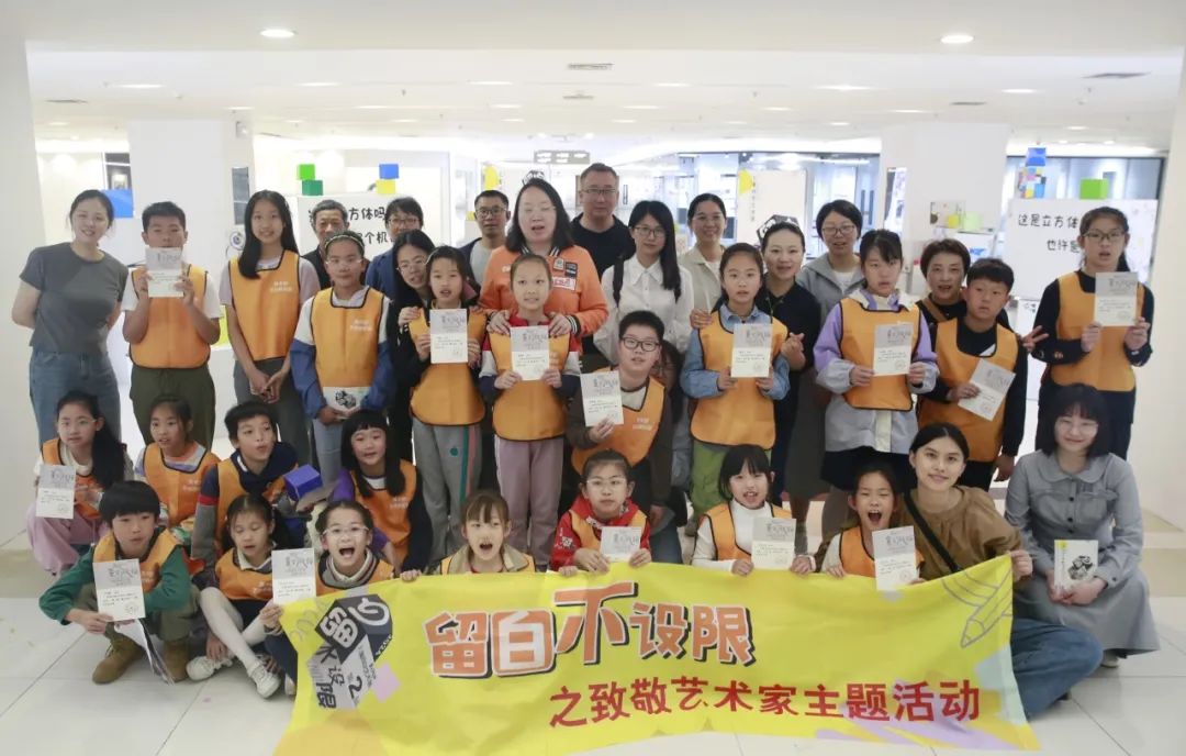 与此同时,在月星家居广场艺术西湖家中厅,杭州少年书画院西画社和艺启趣赏画的学员以“致敬艺术家主题绘画活动”的方式开启了留白不设限艺术西湖家分会场的展览。活动由杭州青少年活动中心美术教师钱薇主持,现场以一个开放性问题为引子进行展开:“这是一个立方体吗?也许是吧?”这个问题引发了丰富的联想,参与者们纷纷提出自己的见解,如“它可能是一个冰块”、“一个泳池”、“一张桌子”或“一本书”的作品风格,学员们从毕加索、梵高、大卫·霍克尼和奈良美智等艺术家的作品欣赏开始,借鉴思路和灵感,探索自己的艺术语言和理念,与大师们进行心灵对话,为“留白不设限”视觉艺术展贡献自己的创意和热情,也为"留白不设限"视觉艺术展增添了无限可能。