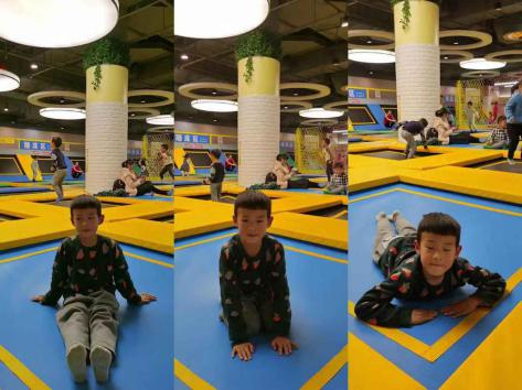 蹦床上各种跳跃,结合地面的“团身跳、屈体跳”等体操动作练