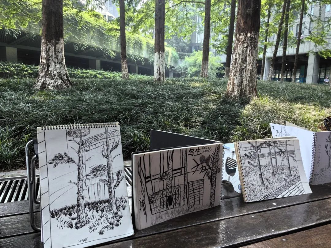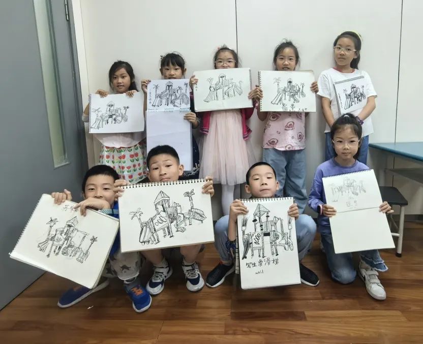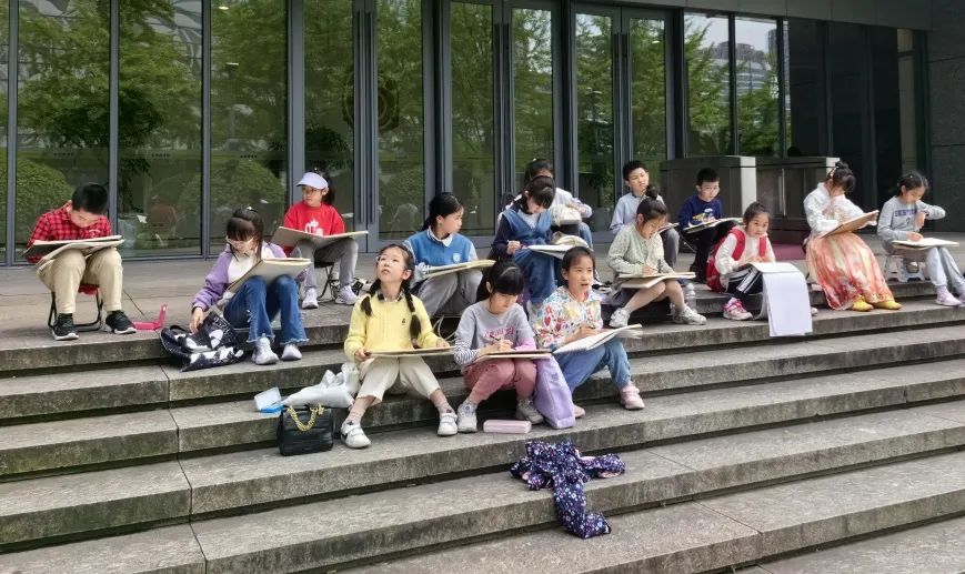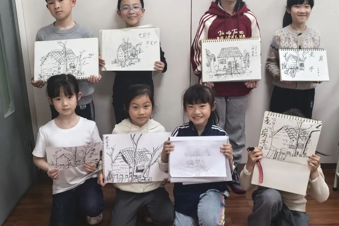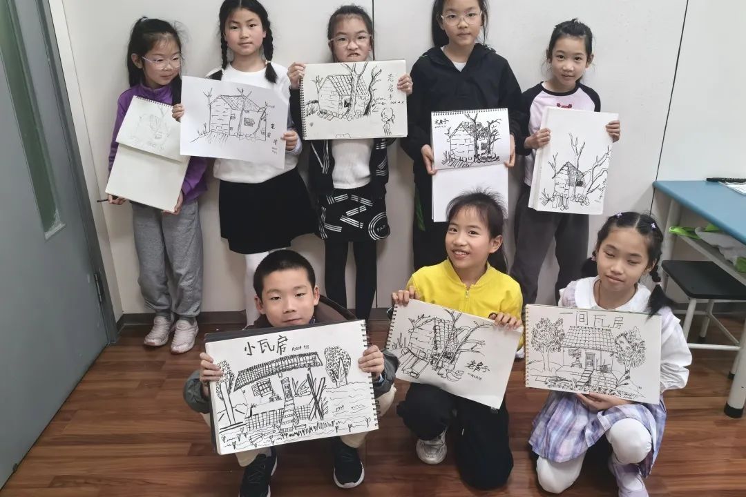 紧接着,他们的视线从自然转向了人类智慧的结晶——建筑。第一次画建筑,孩子们学会了观察,掌握了构图,直线与曲线在他们的笔下交织,低矮小屋的简朴、现代高楼的挺拔,让眼前的城市天际线跃然纸上。