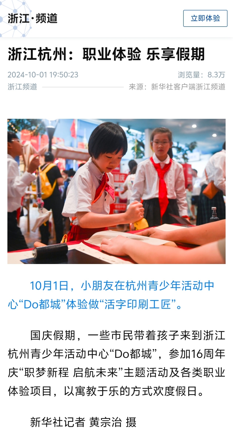 新华社报道“Do都城”国庆期间职业体验活动