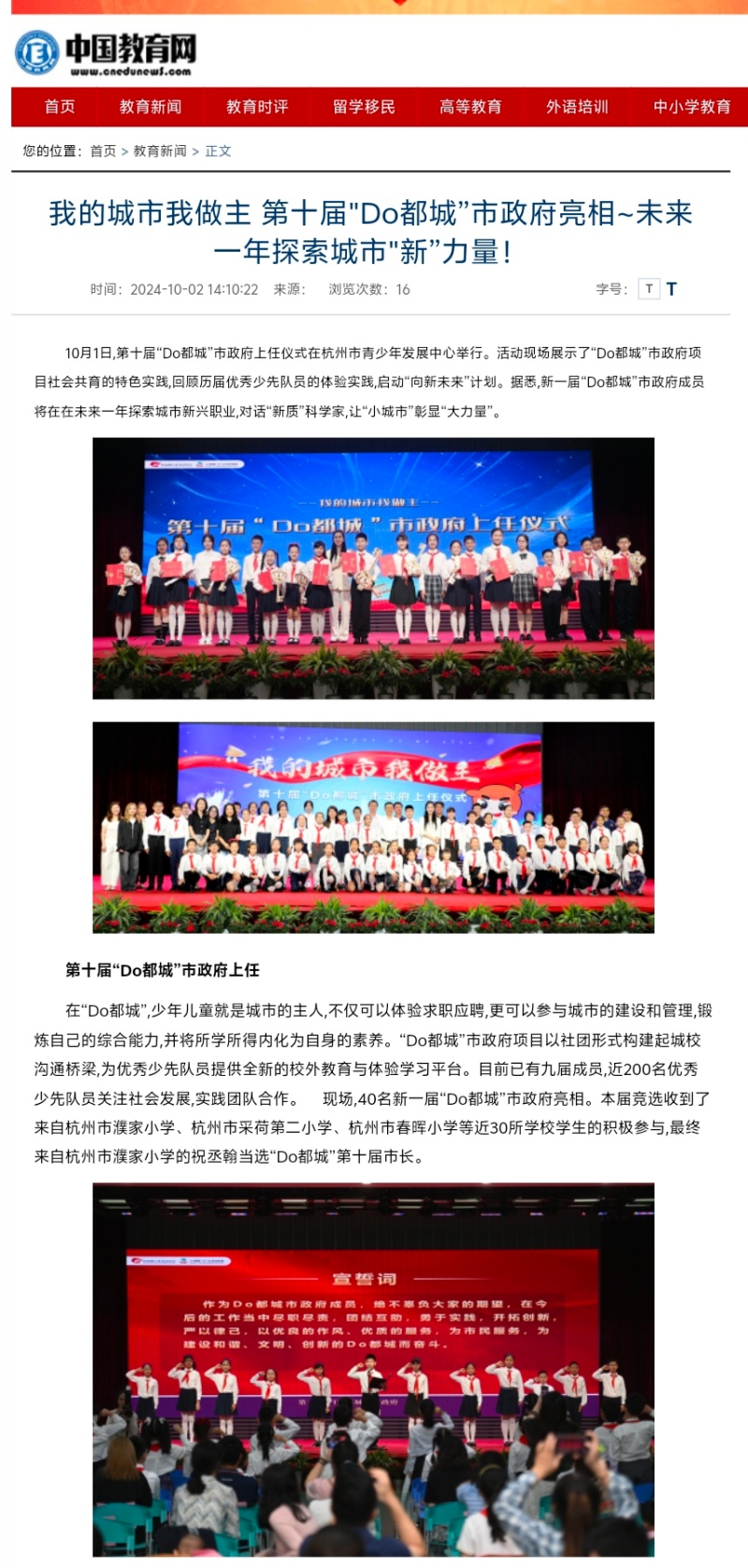 中国网、中国教育网、潮新闻报道第十届“Do都城”市政府上任