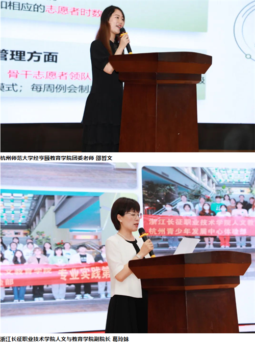 杭州青少年活动中心副主任章楗为活动致辞。章楗表示,杭州青少年活动中心构建少年儿童与青年学生共同实践成长的教育生态,让青年学生助力少年儿童成长的同时,也获得个人综合素质与专业素养的成长。未来,“宫-校-社”的育人共同体也将迎来更为纵深的合作,从社会实践内容到形式,深度赋能青年学生成长。