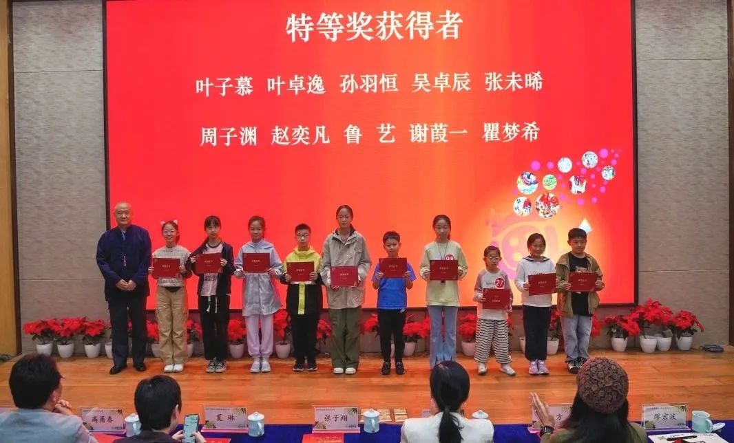 下午,在杭州市澎致小学报告厅,举行了笔绘友好•喜迎华诞——第十一届“发现杭州小画家”少年儿童绘画大赛颁奖典礼。典礼上,由杭州市澎致小学书记、校长徐越致欢迎词,接着由颁奖嘉宾依次为获奖的“小画家们”颁发奖项,最后由杭州市美术家协会主席张子翔宣布画展开幕。